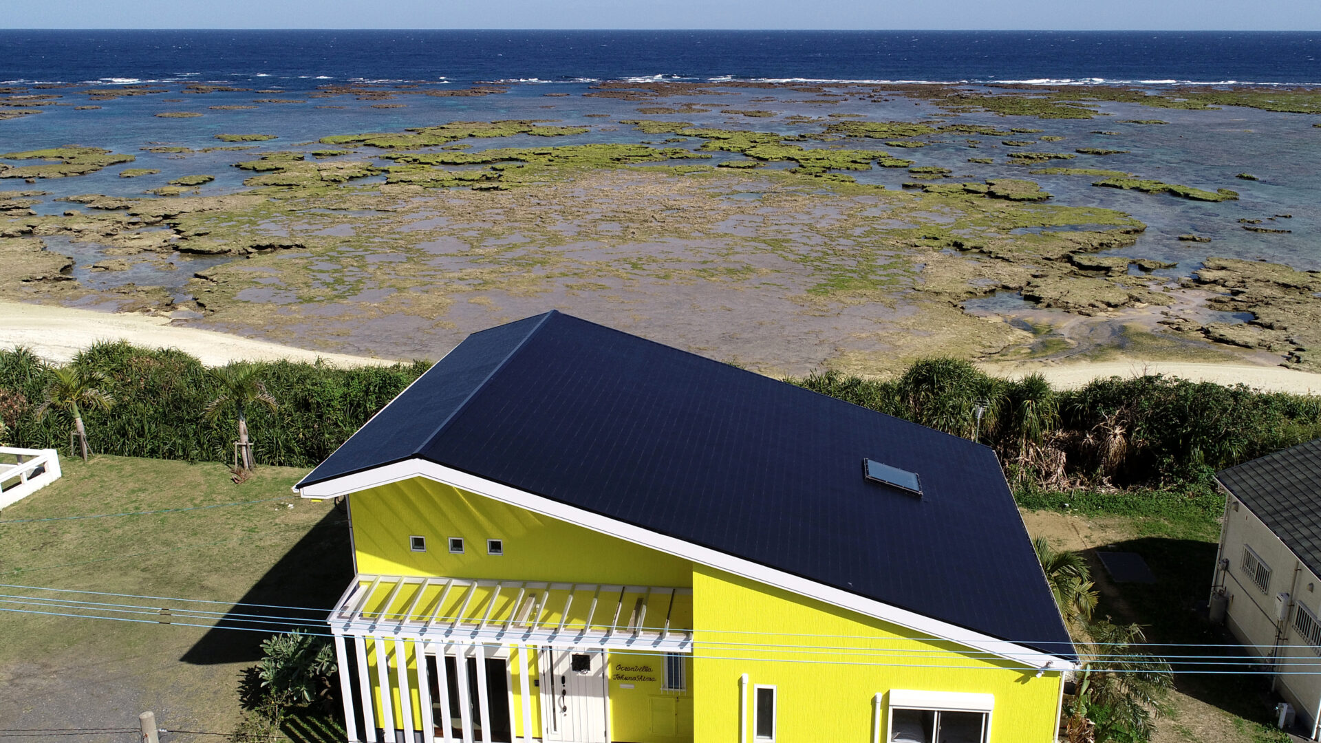 世界自然遺産に登録された奄美群島、鹿児島県徳之島町に立地するサトウキビ畑の中を海側に走ると見えてくるレモンイエローのお洒落な概観が特徴です。リビングから広がる海では、冬場、子育てのため南下してくるザトウクジラが海面でジャンプする瞬間に出会えることがあります。テラスから階段を下りて、アダンの樹の森を抜けると、そこは一面に広がるプライベートビーチです。2025年夏には、すぐ近くに最新鋭の医療設備を備えた「徳之島徳洲会病院」が完成予定で、医療ツーリズムの滞在先としてもご利用戴けます。