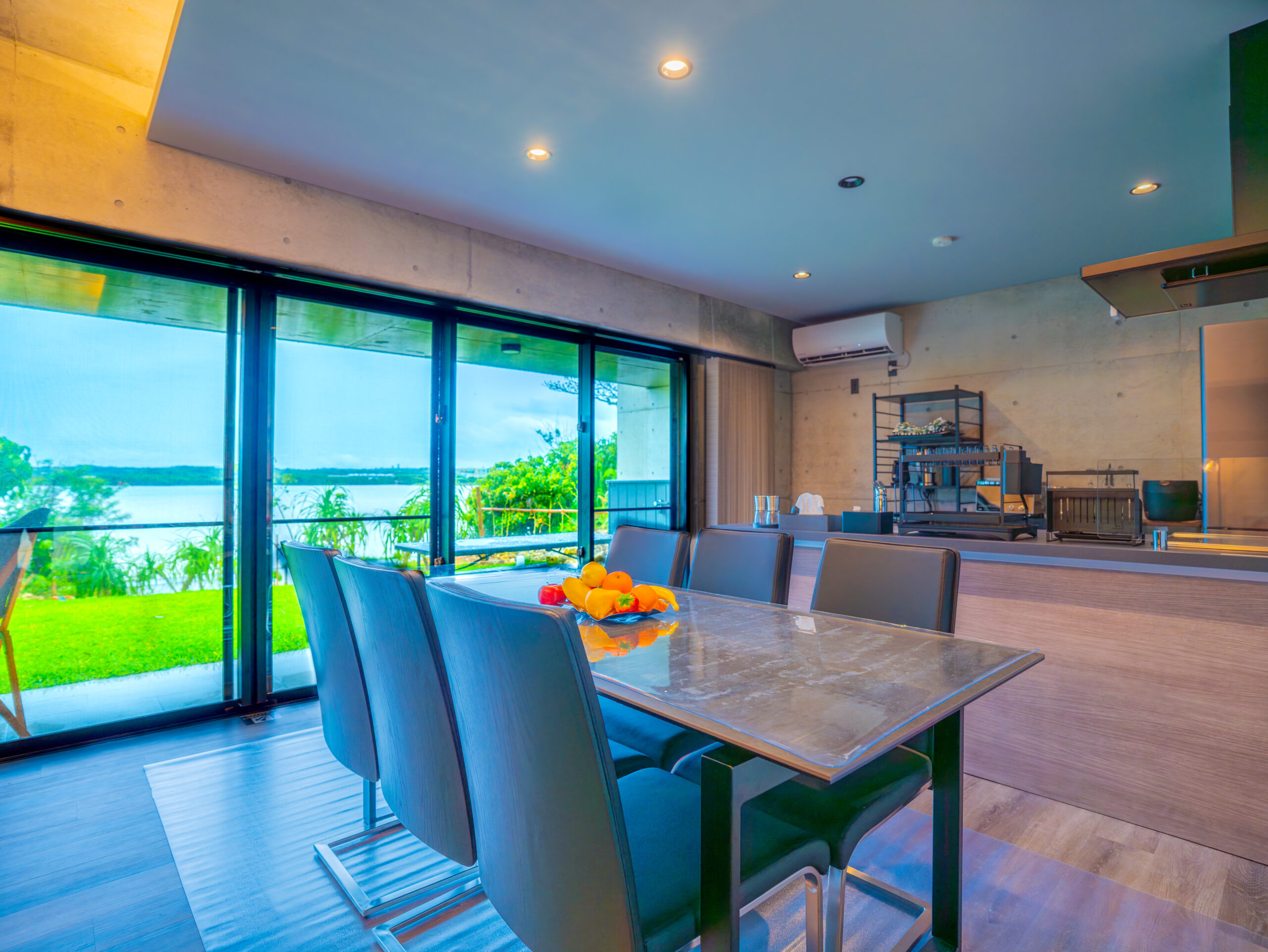 ラムサール条約の登録湿地である与那覇湾に面したオーシャンフロントの宿です。宮古空港から車で10分、東洋一と称される「与那覇前浜ビーチ」へも車で5分のアクセス。コンクリート打ちっ放しのお洒落な雰囲気の宿は、2LDKの広々とした室内です。リピングの窓を開けると、そこには与那覇湾の景色が広がっています。